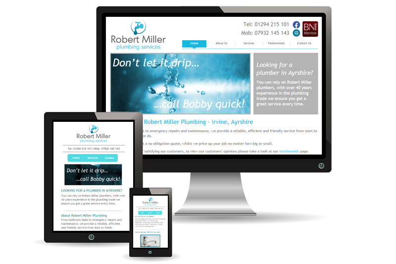 Brochure website and mobile-friendly website for a repair plumber in Irvine, Ayrshire.