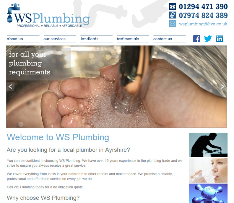 Brochure website design for a repair plumber in Ardrossan, Ayrshire.