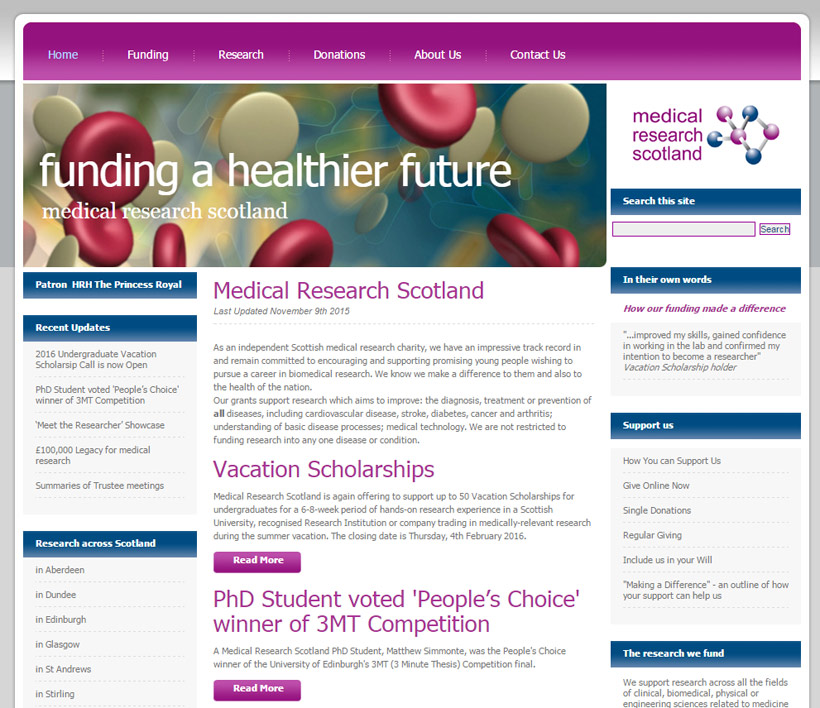 Brochure website with a search facility for a large charity organisation based in Edinburgh.
