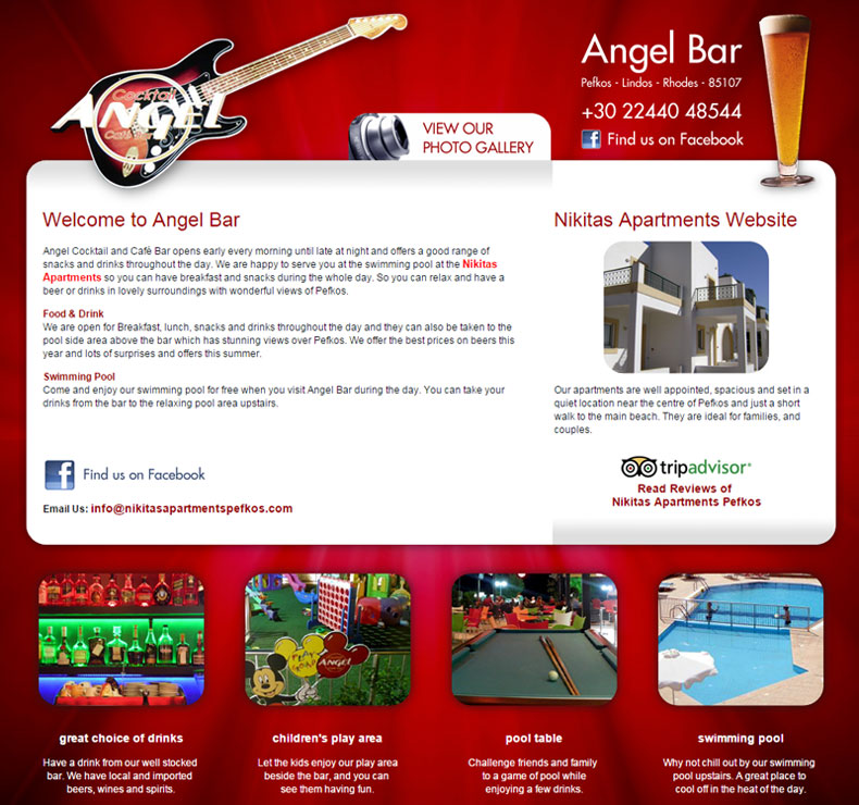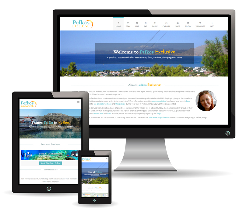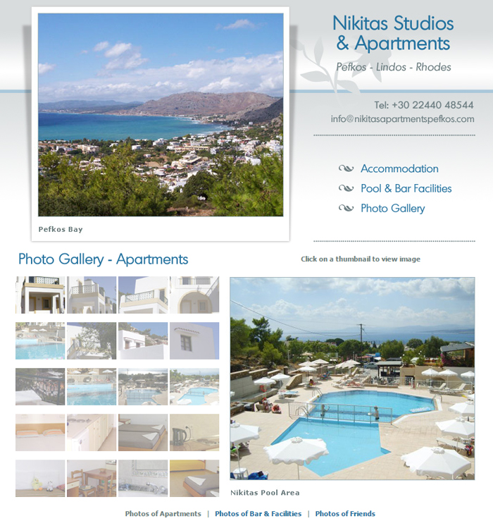 Brochure website with booking enquiry form for accommodation in Pefkos, Rhodes.