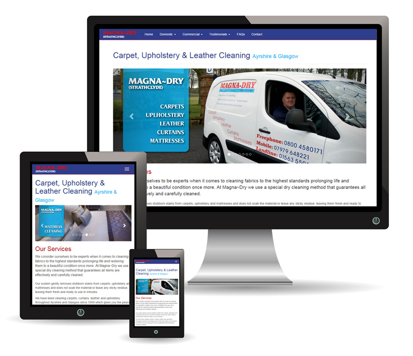 Responsive website design for a carpet cleaning company based in Kilmarnock, Ayrshire.