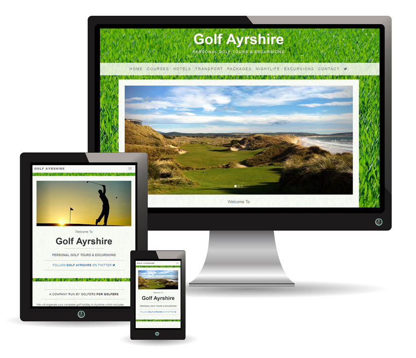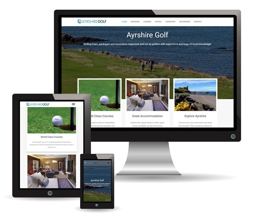 Brochure website and mobile-friendly design for a golfing holidays company in Ayrshire.