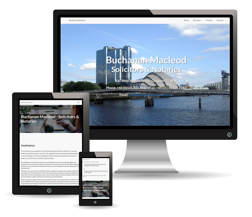 Responsive website design for Solicitors & Notaries based in Glasgow.