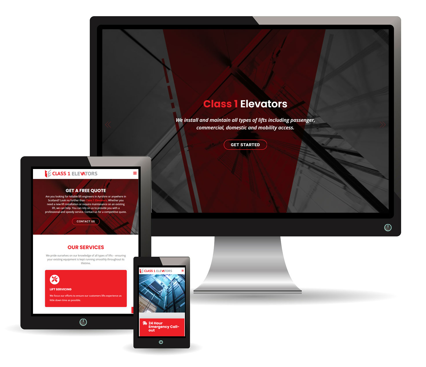 Responsive website design for Class 1 Elevators Ltd based in Ayrshire, they install and maintain all types of lifts including passenger, commercial, domestic and mobility access.