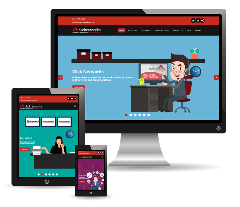 Responsive website design for Click Networks - IT Services and Cloud Solutions based in Glasgow.