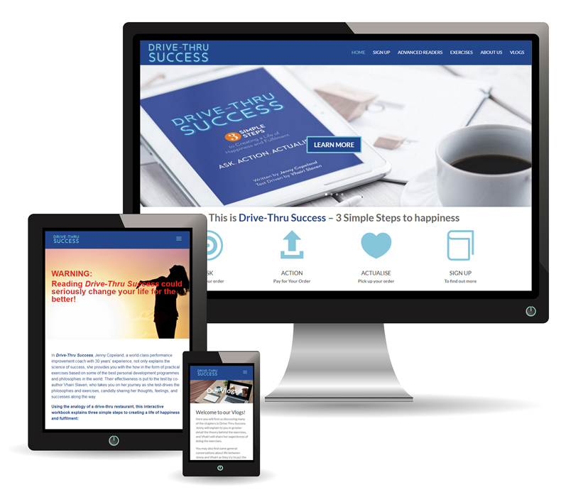 Responsive website design for a self improvement book by Jenny Copeland and Vhairi Slaven for those who want to create a life of happiness and fulfilment.