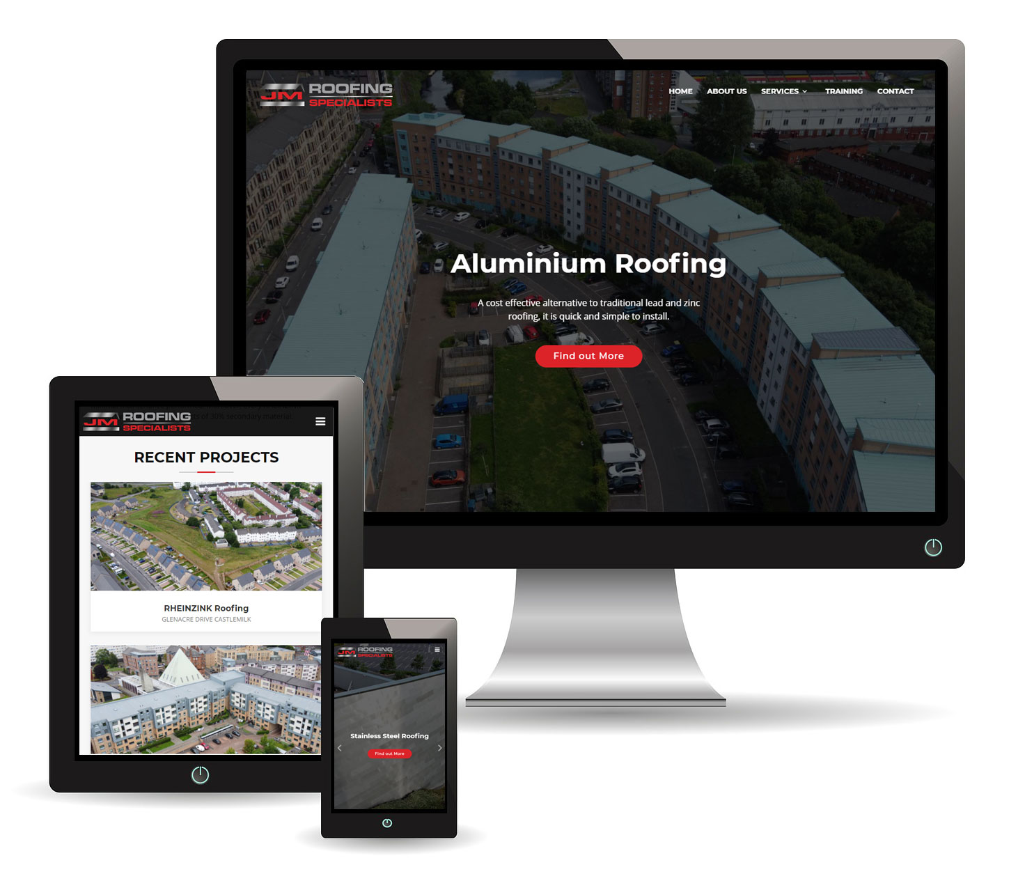 Responsive website design for JM Roofing, specialists in traditional metal roofing and cladding installation using Zinc, Copper, Aluminium, Stainless Steel and Lead. Based in Glasgow, covering the whole of Scotland.