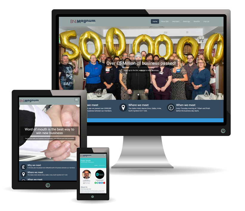 Responsive website for BNI Networking group in Irvine, Ayrshire.