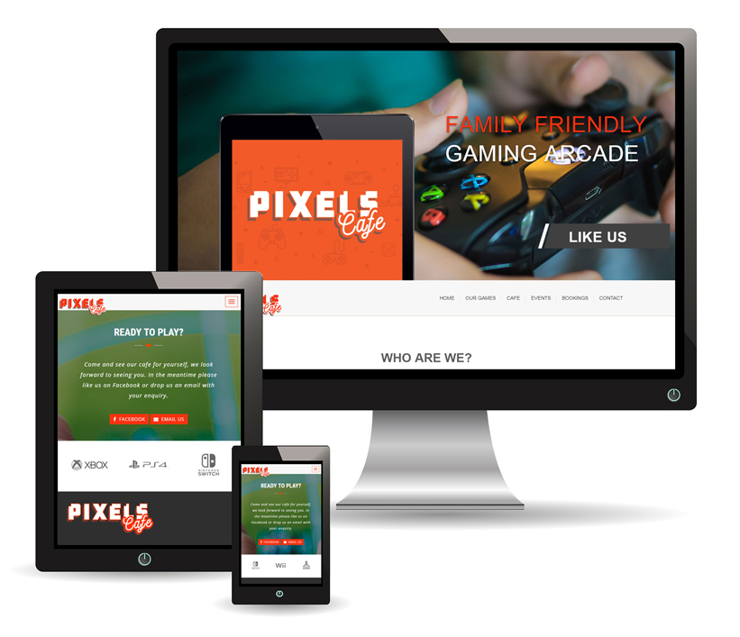 Responsive website design idea for a Cafe combining retro gaming and coffee.
