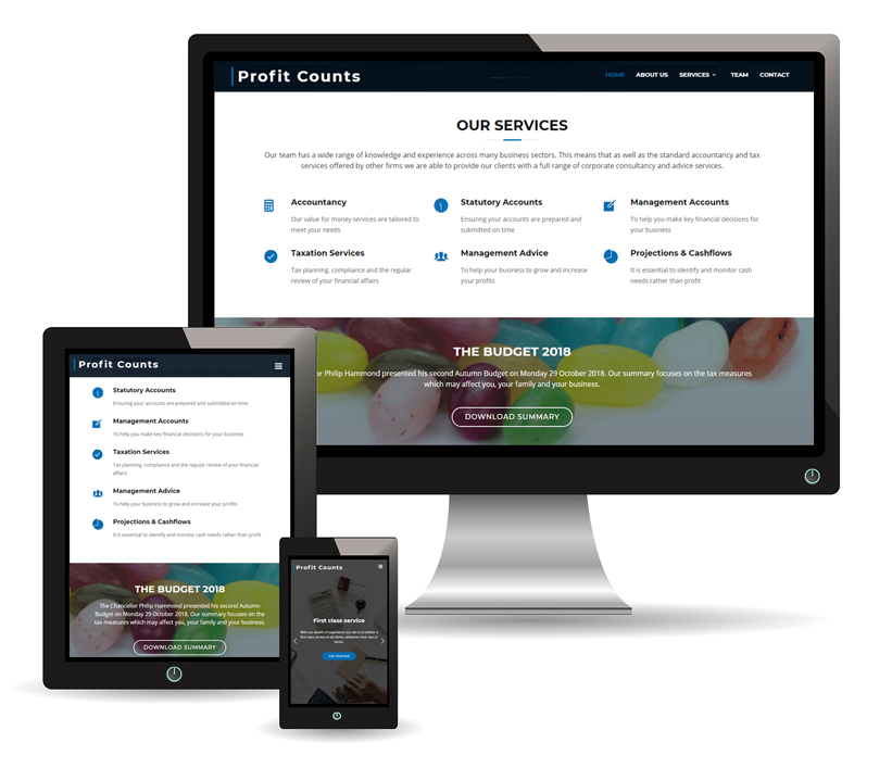 Responsive website design idea for corporate business advisers and chartered accountants firm.