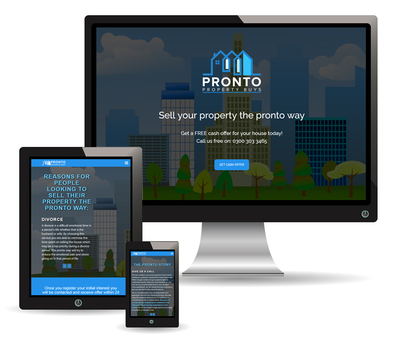 Responsive website design idea for Pronto Property Buys who provide an innovative and alternative way to selling your property that can save you valuable lengths of time.