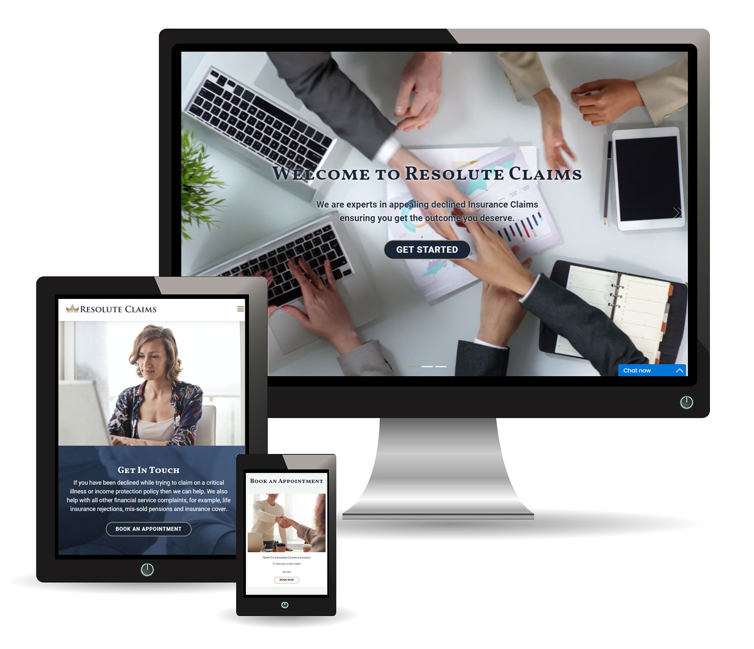 Responsive website redesign for Resolute Claims Specialists who can help customers by appealing against declined life insurance claims or rejected critical illness claims.