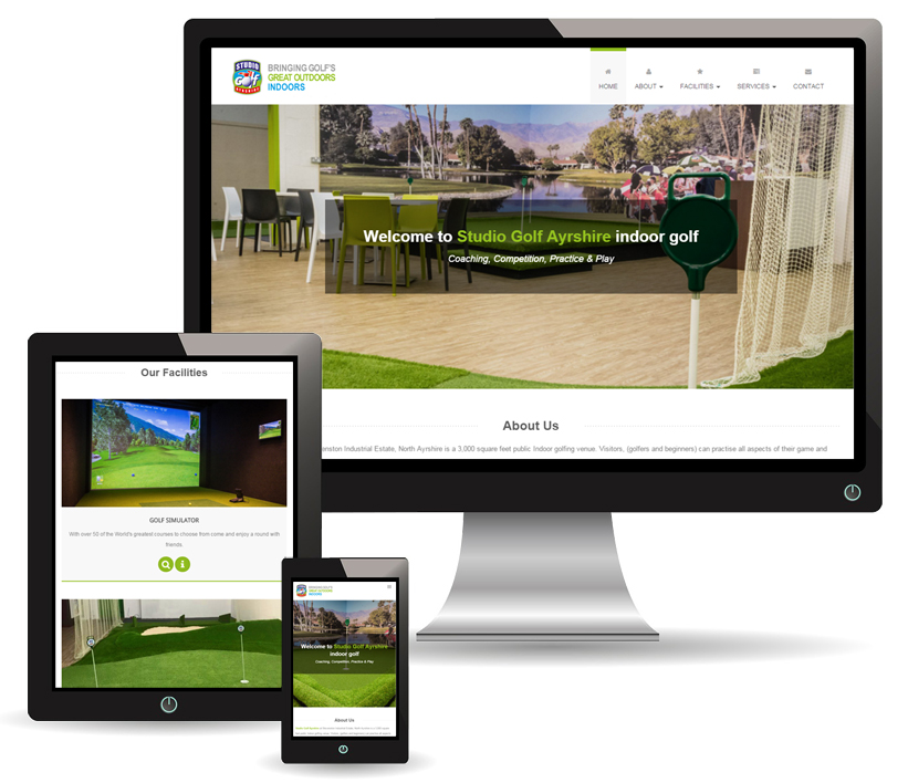 Responsive website design for an indoor golf facility in Stevenston, Ayrshire.