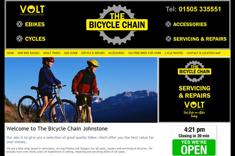 Brochure website for a bicycle shop in Johnstone, Renfrewshire.